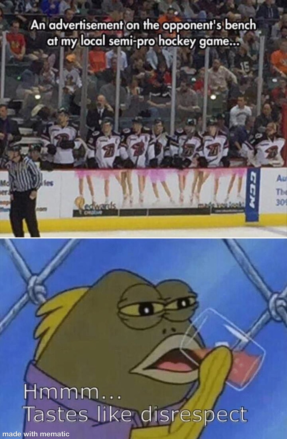 It was the beginning of the game (pretty much) when at the end of a play when he tripped over our goalie’s hockey stick, he was talking smack of whatever kind and set off our player who then yanked him up off the ice. #22 continued to agitate and antagonize our players surrounding the goal. They separated and everything was chilling. Then, they began to face off and the referee couldn’t even drop the puck for him bad mouthing our players and not focusing on the game at hand.